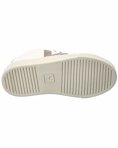 - Small Esplar Leather & Suede Sneaker in white and yellow leather and suede with logo accents and blue laces