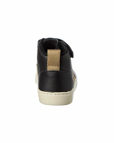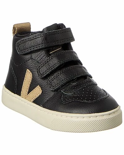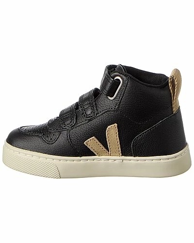 - Small V-10 Mid Leather Sneaker in black and dune leather and silver-tone hardware with logo accents
