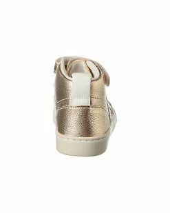 - Small V-10 Mid Leather Sneaker in gold and white leather and silver-tone hardware with logo accents