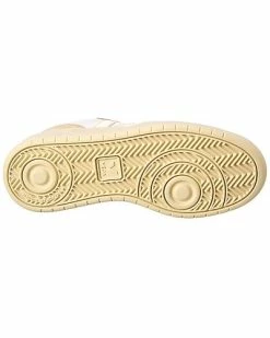- V-10 Leather & Mesh Sneaker in white and butter leather and mesh with logo accents
