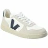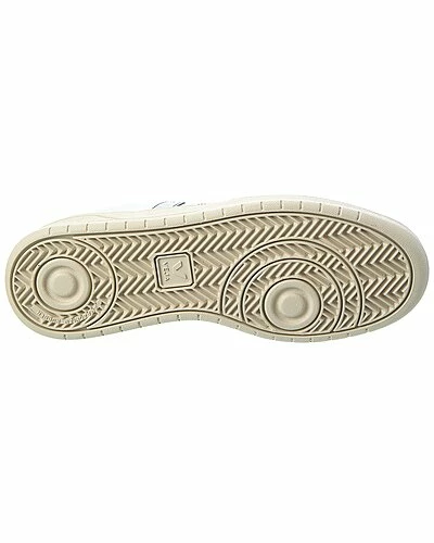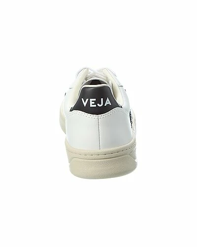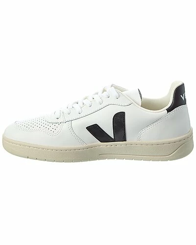 - V-10 Leather Sneaker in white and black leather with perforated detailing and logo accents