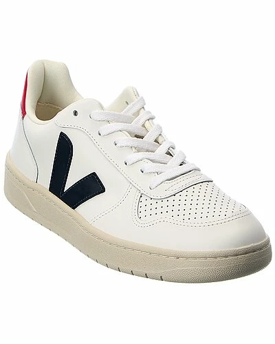 - V-10 Leather Sneaker in white, blue and red leather with logo accents