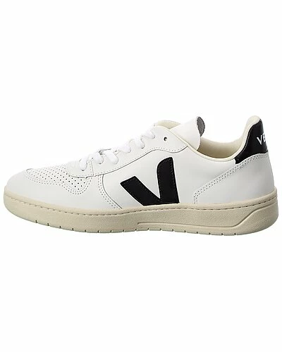 - Design details: The VEJA V 10 Leather is like all other VEJA models made in Brazil. While the white upper is made of Leather, a material made oft recycled plastic bottles. Also the inner lining consist of recycled polyester. The sole features natural rubber and therefore prevents further deconstruction of the rainforest. Also in terms of design the V 10 Leather impresses with a clean and timeless look.
