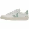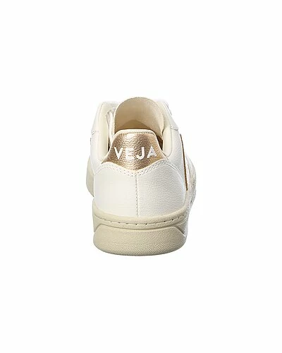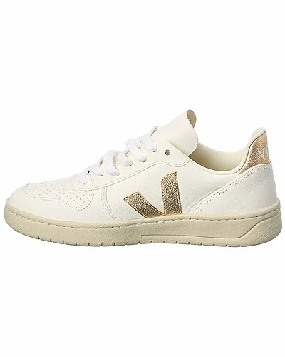 - V-10 Leather Sneaker in extra white and platinum leather with perforated design and logo accents