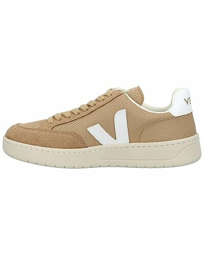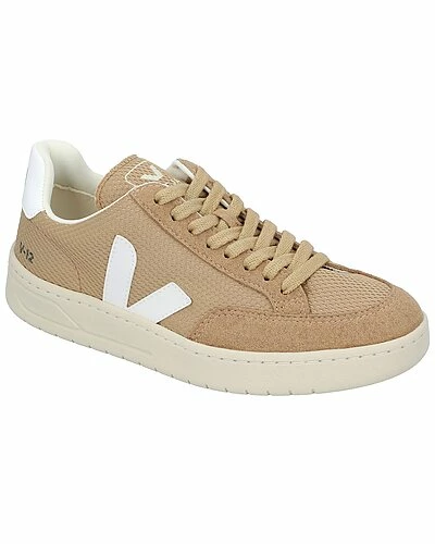 - V-12 Vegan Sneaker in dune white cotton textile with V-Logo on the side